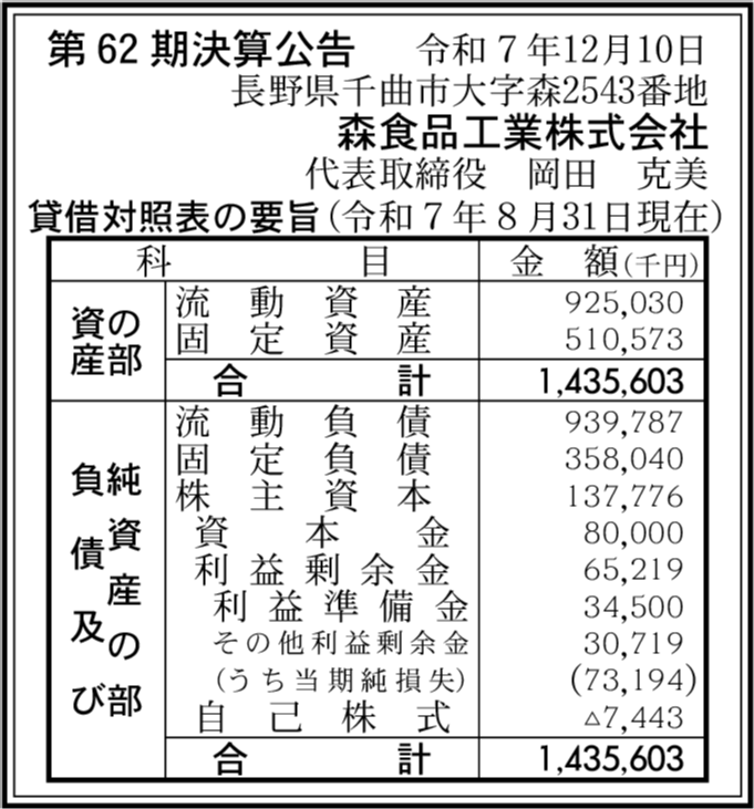 株式会社MJ 長野県千曲市 【2025年3月期】 |