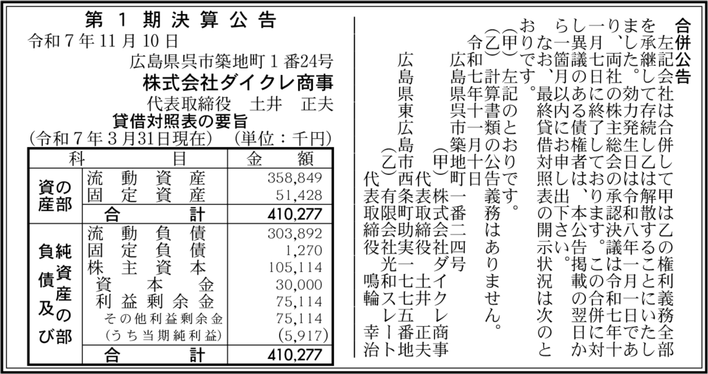 株式会社ダイクレ 広島県呉市 【2023年3月期】 |