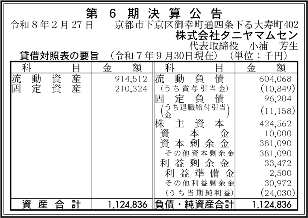 谷山無線電機株式会社 京都市下京区 【2025年3月期】 |