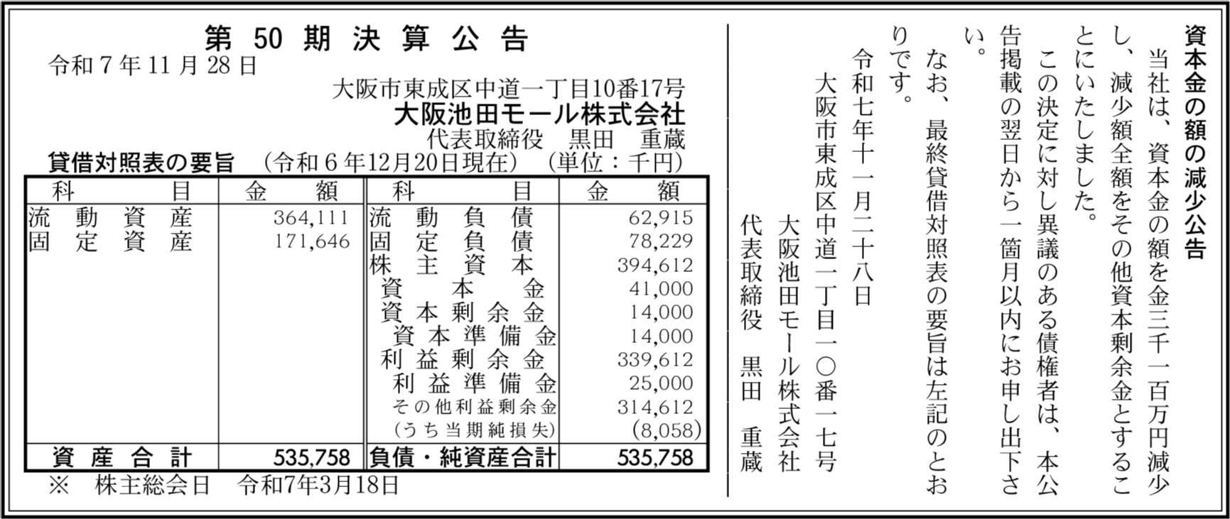 | 会社名 | 大阪池田モール株式会社 |