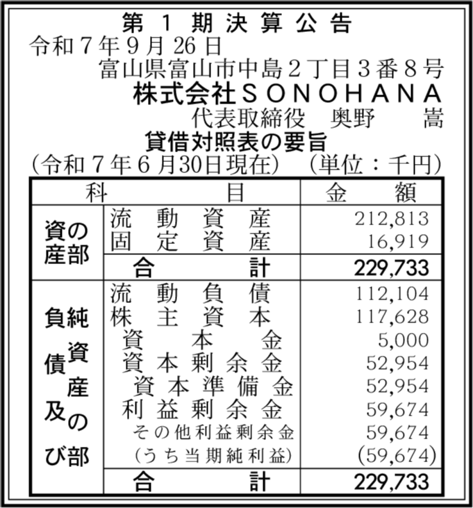 オンリーワンライフホールディングス株式会社 富山県富山市 【2025年6月期】 |
