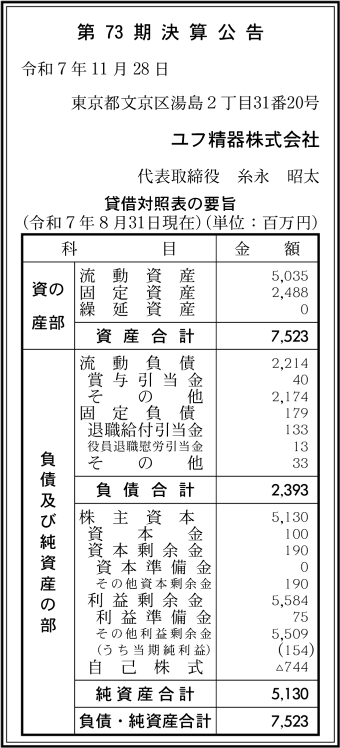 | 総資産 | 75億2,300万円 (▲0.29%) |