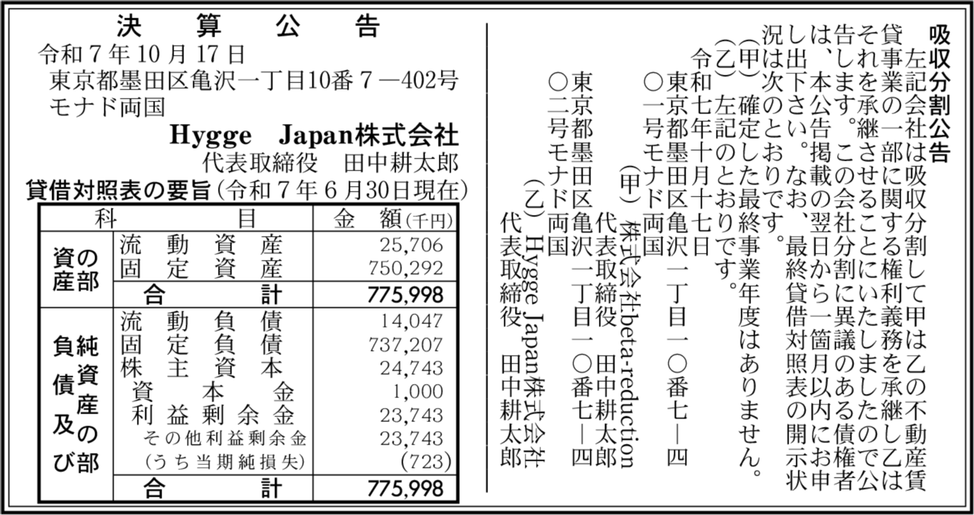 会社名 | Hygge Japan株式会社 |