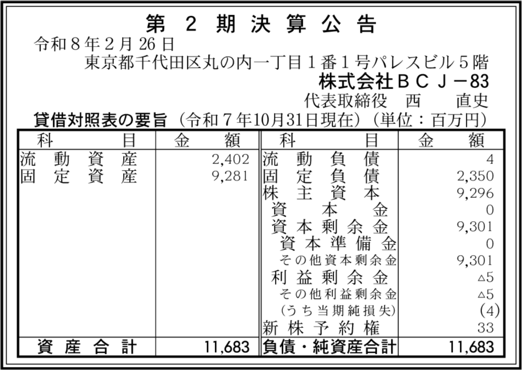 株式会社BCJ‐85‐1 東京都千代田区 【2025年8月期】 |