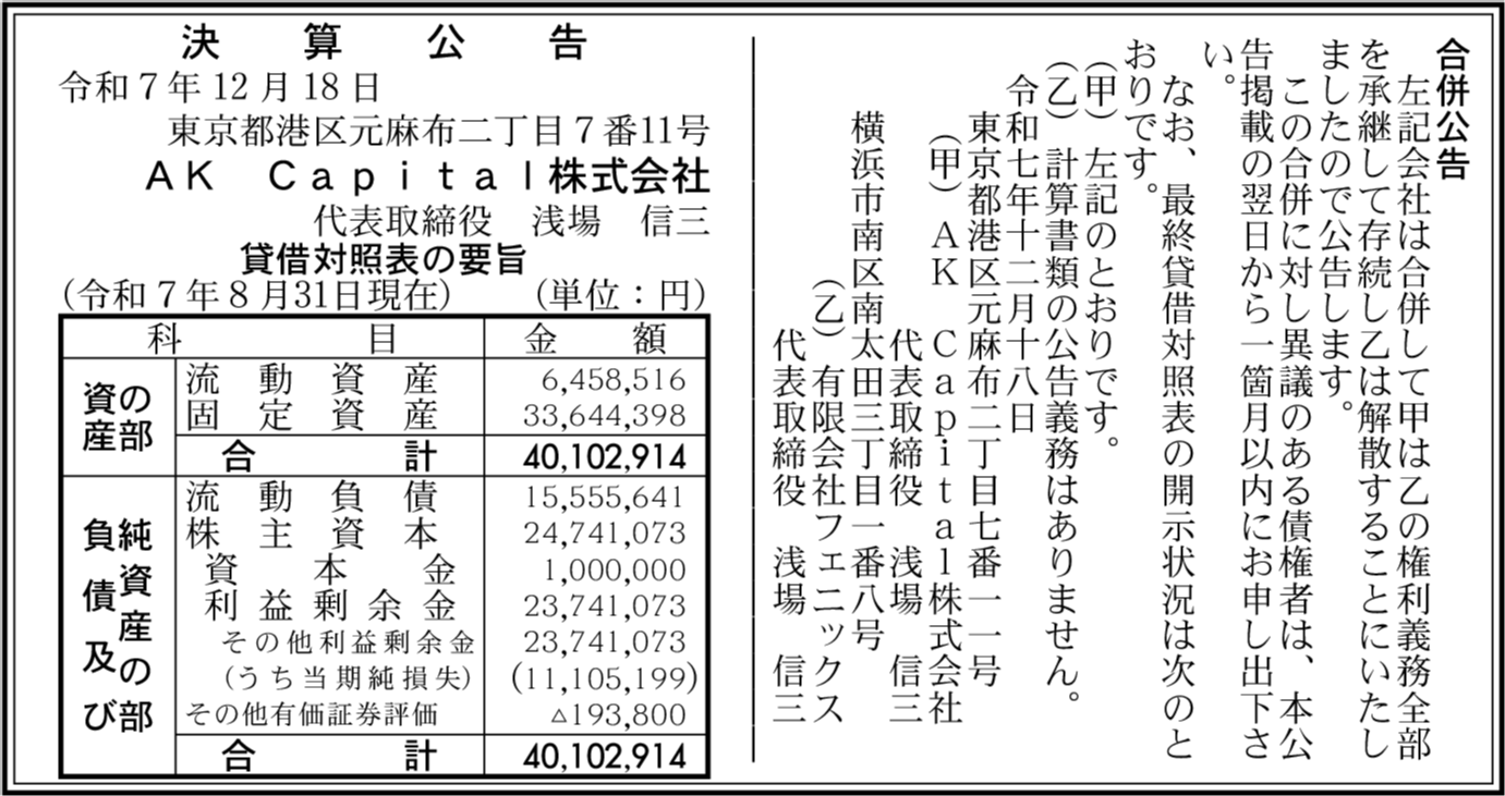 株式会社AI研究所 東京都港区 【2025年6月期】 |