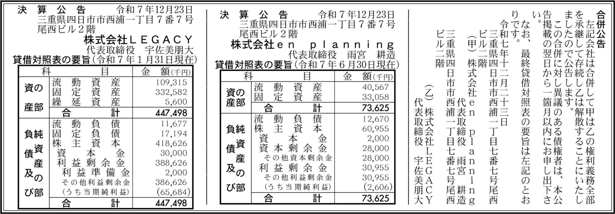 株式会社en planning 三重県四日市市 【2025年6月期】 |