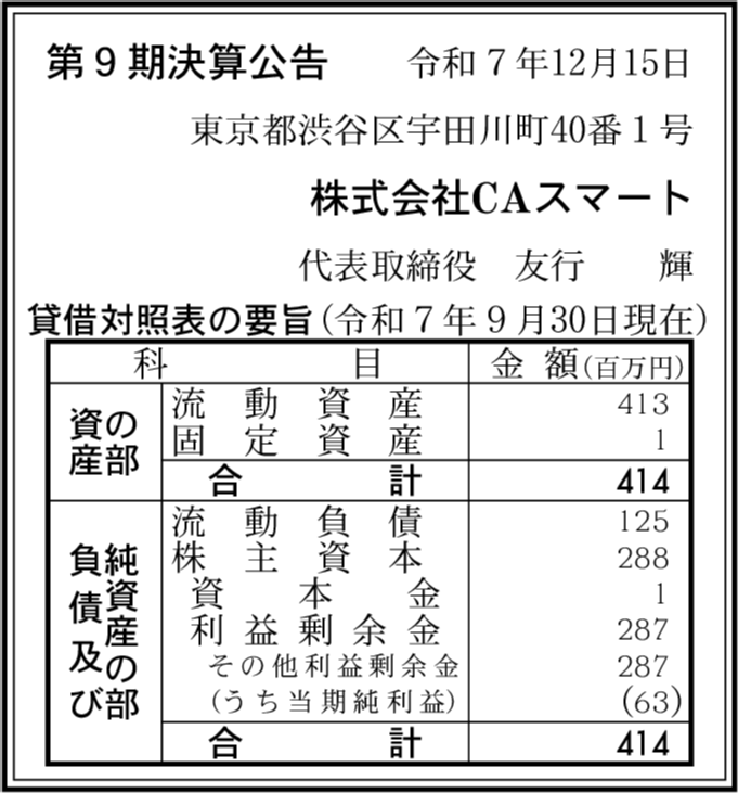 株式会社CAM 東京都渋谷区 【2025年9月期】 |
