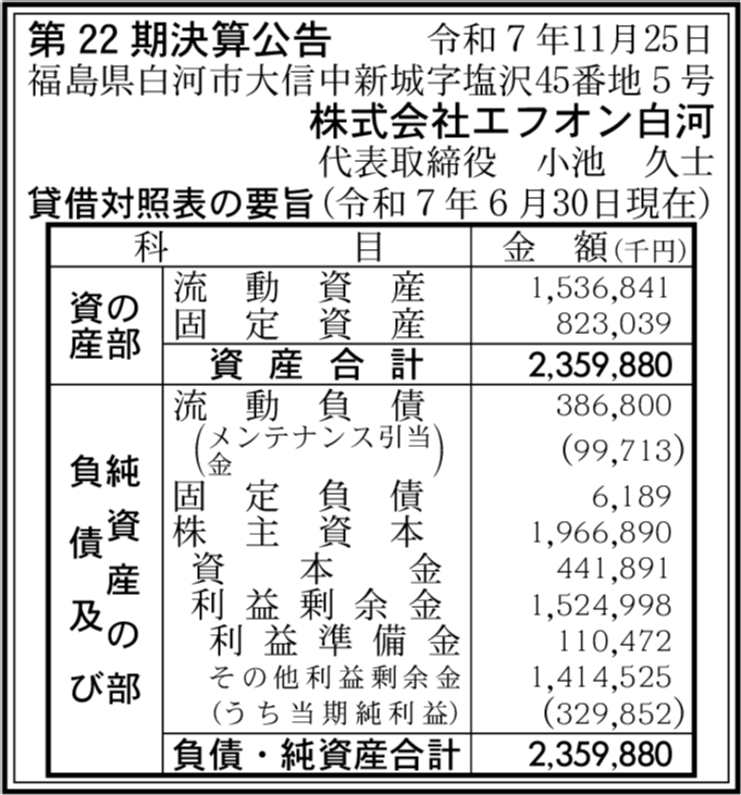 株式会社エフオン新宮 和歌山県新宮市 【2025年6月期】 |