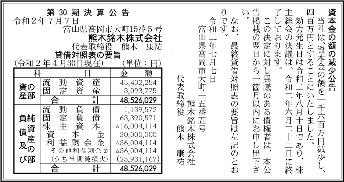 熊谷株式会社 富山県高岡市 【2024年12月期】 |