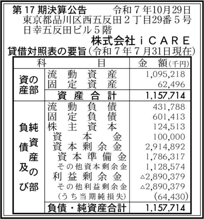 | 会社名 | 株式会社iCARE |