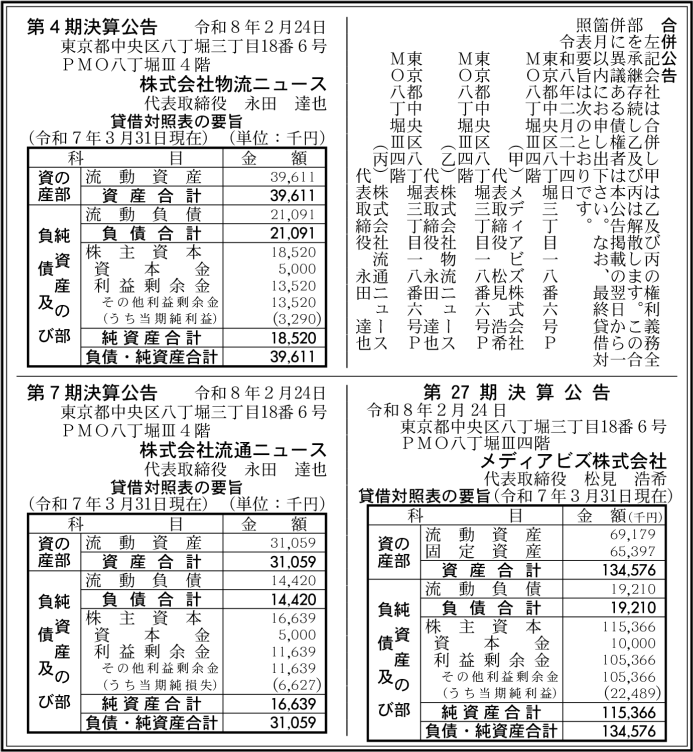 株式会社物流ニュース 東京都中央区 【2025年3月期】 |