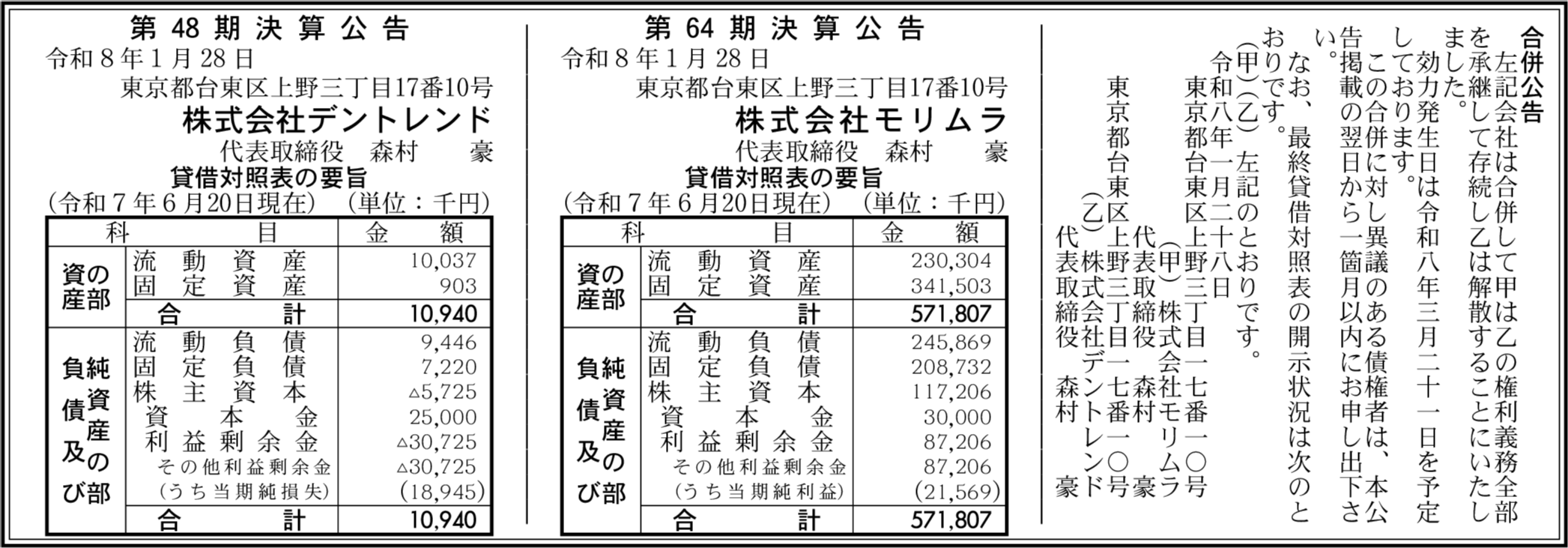 株式会社モリムラ 東京都台東区 【2025年6月期】 |