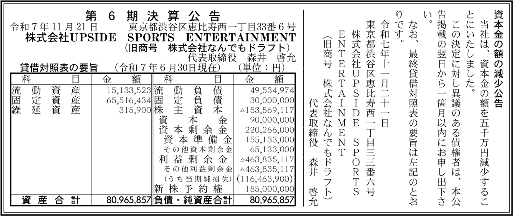 | 会社名 | 株式会社UPSIDE SPORTS ENTERTAINMENT |