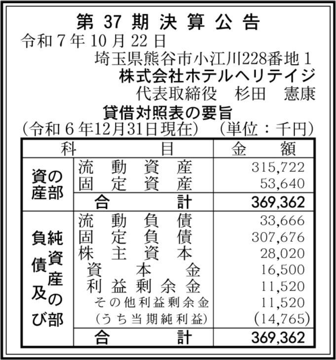 | リアン・ネクスト株式会社 埼玉県熊谷市 【2024年12月期】 | △392万8,000円 | 4,688万円 | 1億2,386万6,000円 |