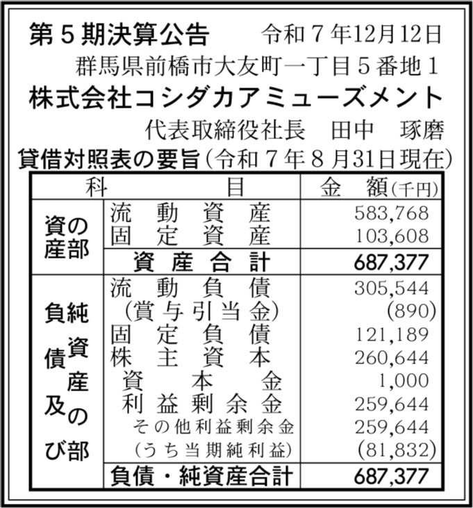 株式会社共進 群馬県前橋市 【2025年7月期】 |