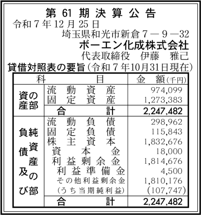 | 会社名 | ボーエン化成株式会社 |