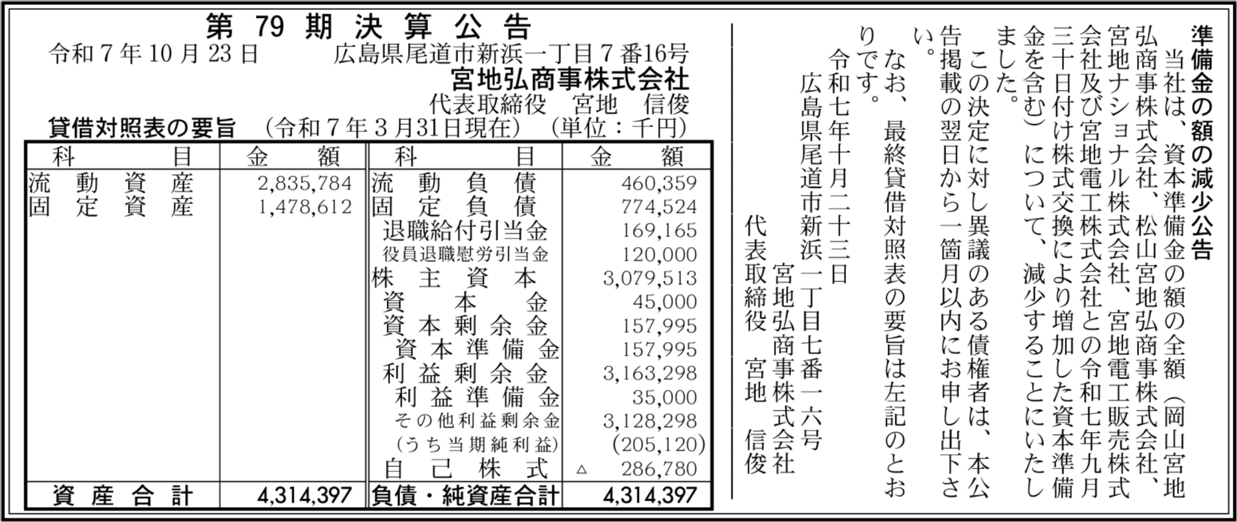 | 宮地ナショナル株式会社 広島県尾道市 【2025年3月期】 | 77万2,000円 | 4億7,620万6,000円 | 27億3,818万2,000円 |