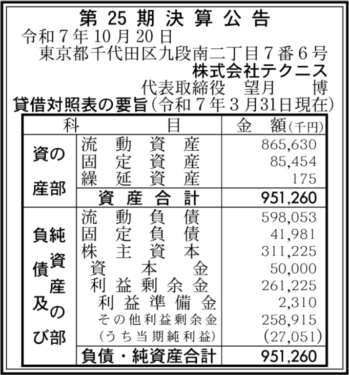 株式会社コスモスエンジニアリング 東京都千代田区 【2025年7月期】 |