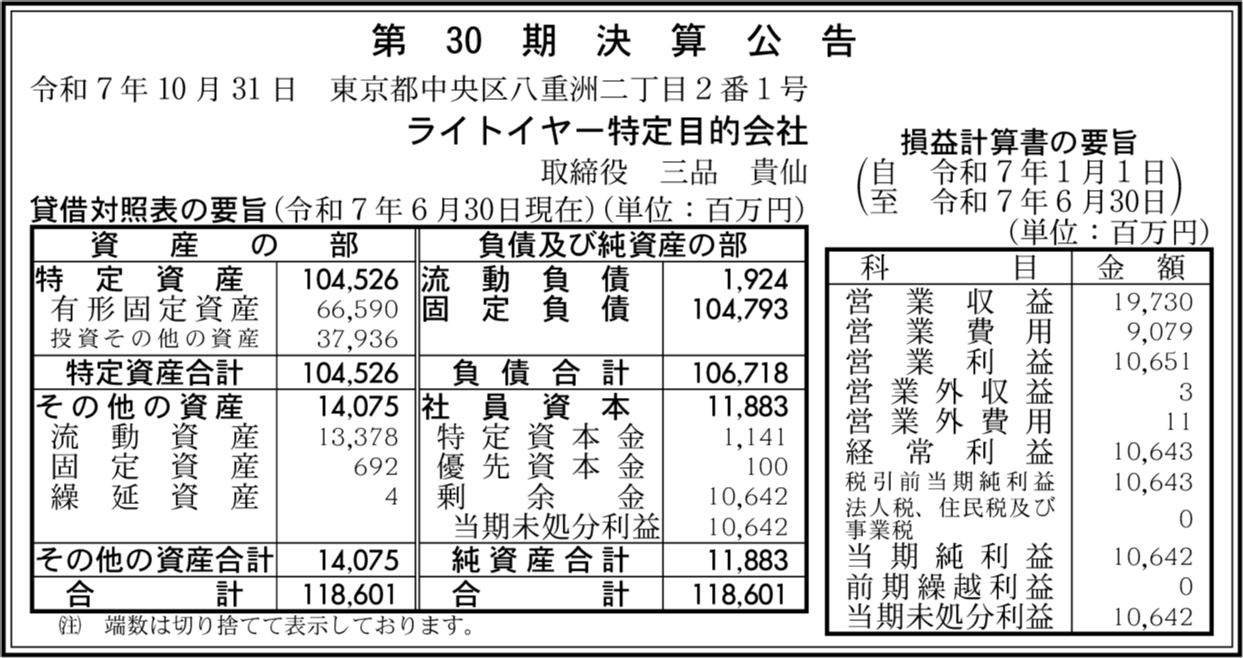 | 会社名 | ライトイヤー特定目的会社 |