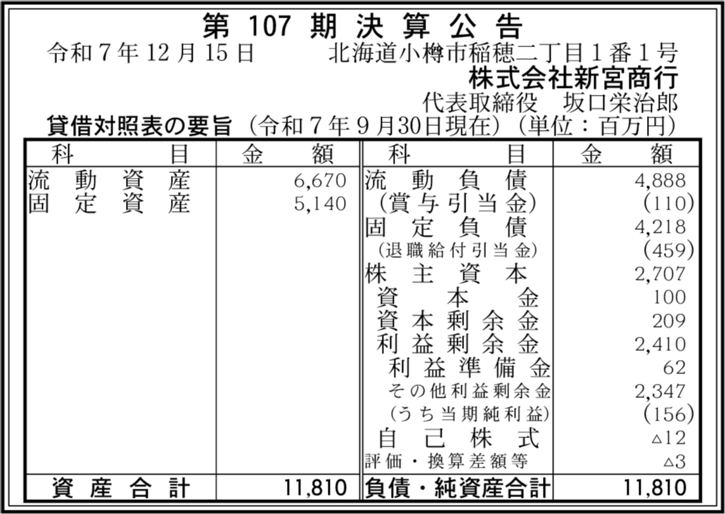| 総資産 | 118億1,000万円 (+3.15%) |