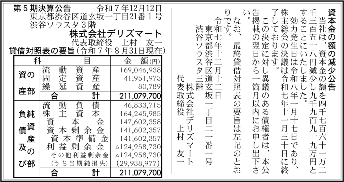 | 利益剰余金 | ▲1億2,495万8,730円 |