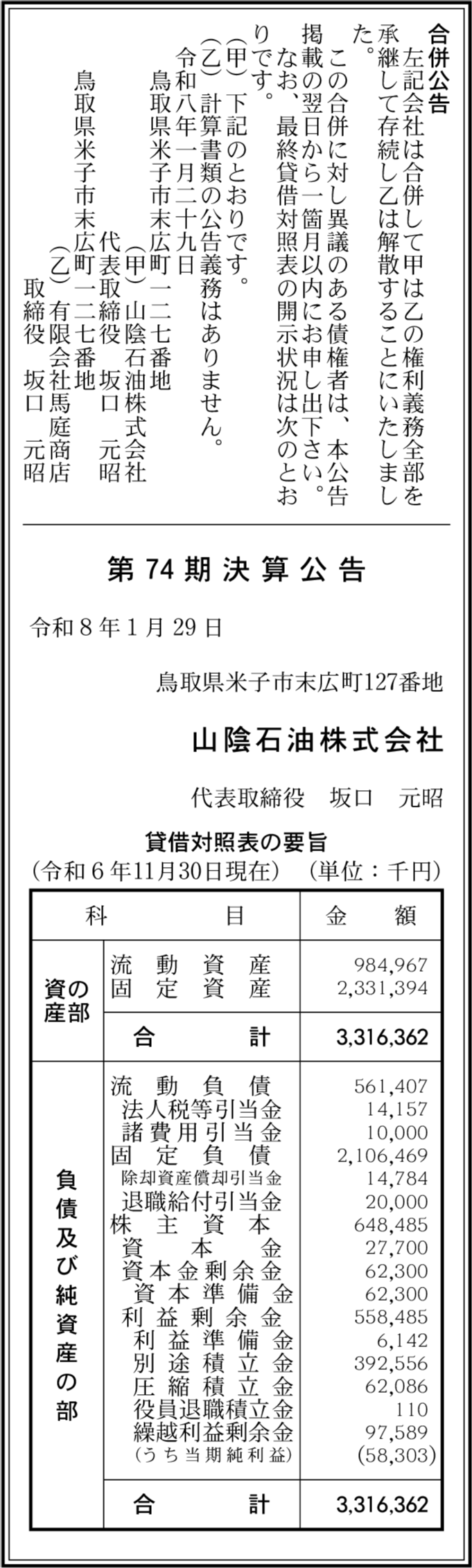 株式会社ヤマネ産機 鳥取県米子市 【2025年9月期】 |