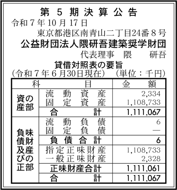 会社名 | 公益財団法人隈研吾建築奨学財団 |