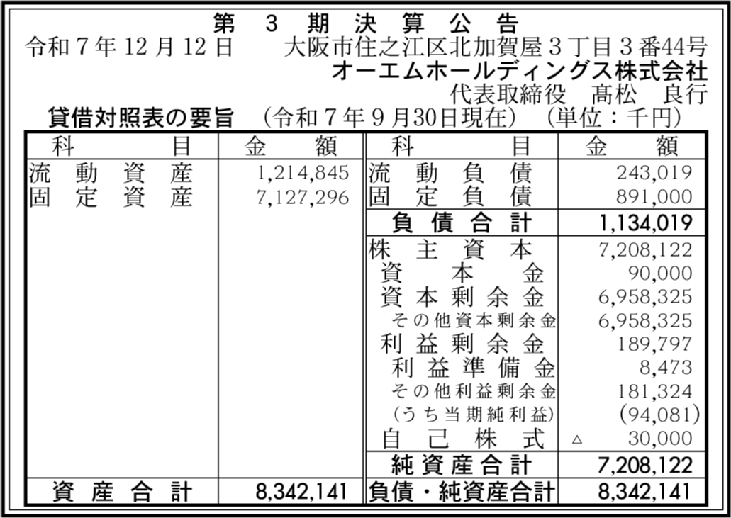 オーエム工業株式会社 大阪市住之江区 【2024年9月期】 |