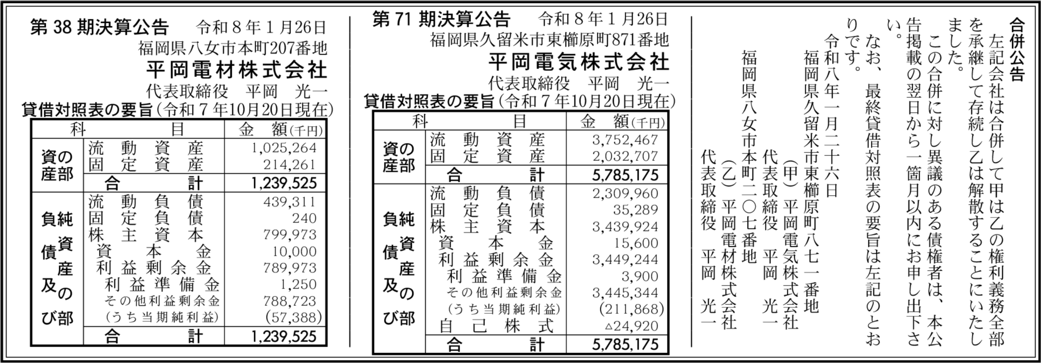 平岡電気株式会社 福岡県久留米市 【2025年10月期】 |