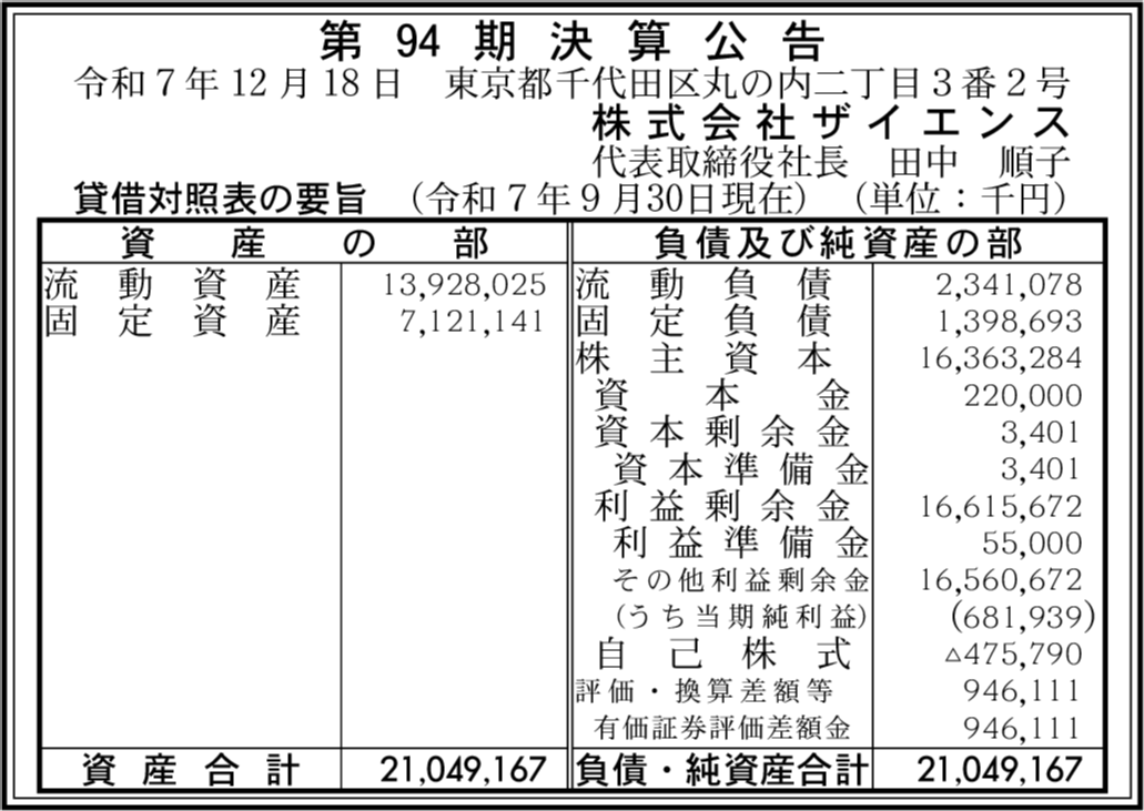 | 総資産 | 210億4,916万7,000円 (+2.63%) |