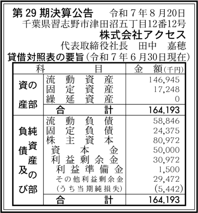 利益剰余金 | 3,097万2,000円 (▲16.1%) |