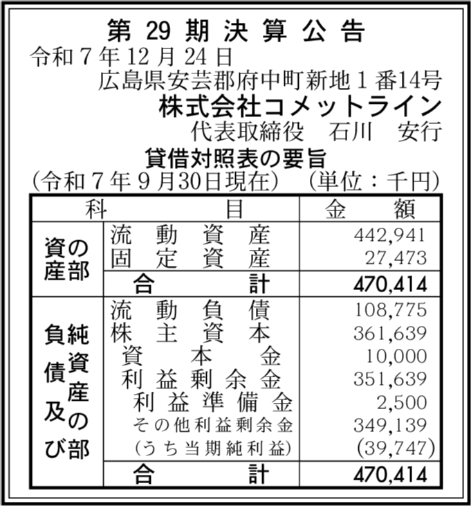 | 利益剰余金 | 3億5,163万9,000円 (+11.32%) |