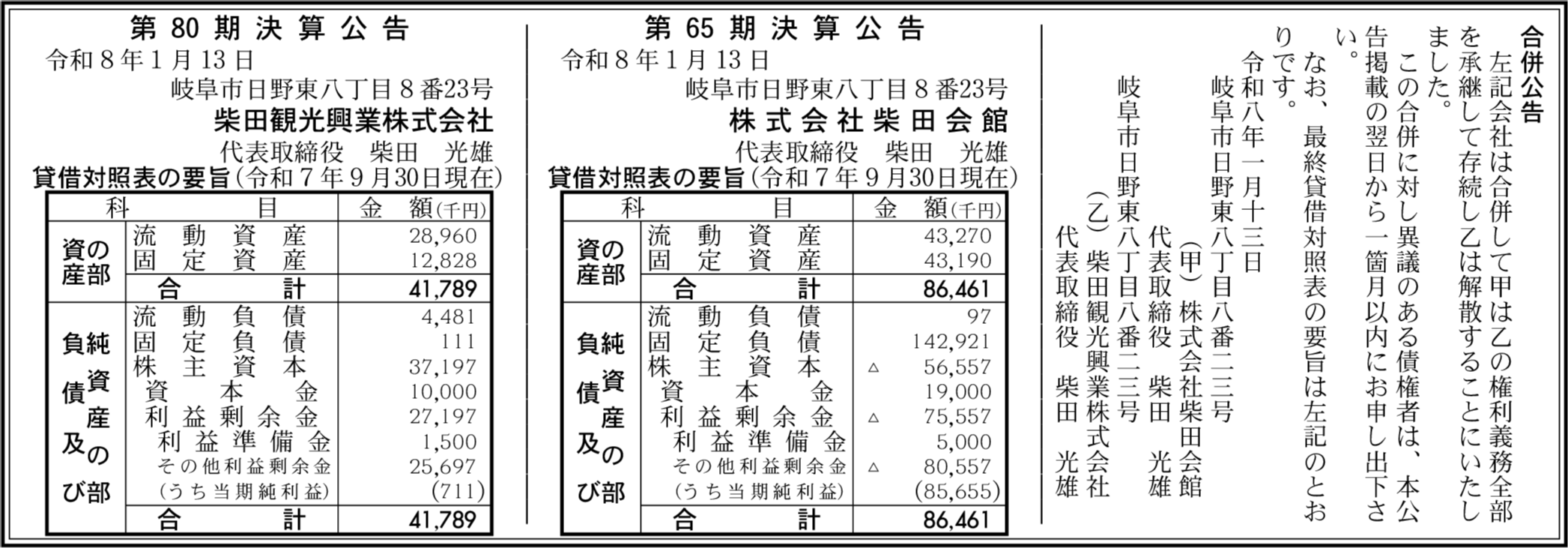 柴田観光興業株式会社 岐阜市 【2025年9月期】 |