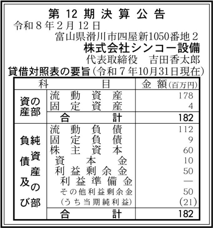 株式会社シンコー設備 富山県滑川市 |
