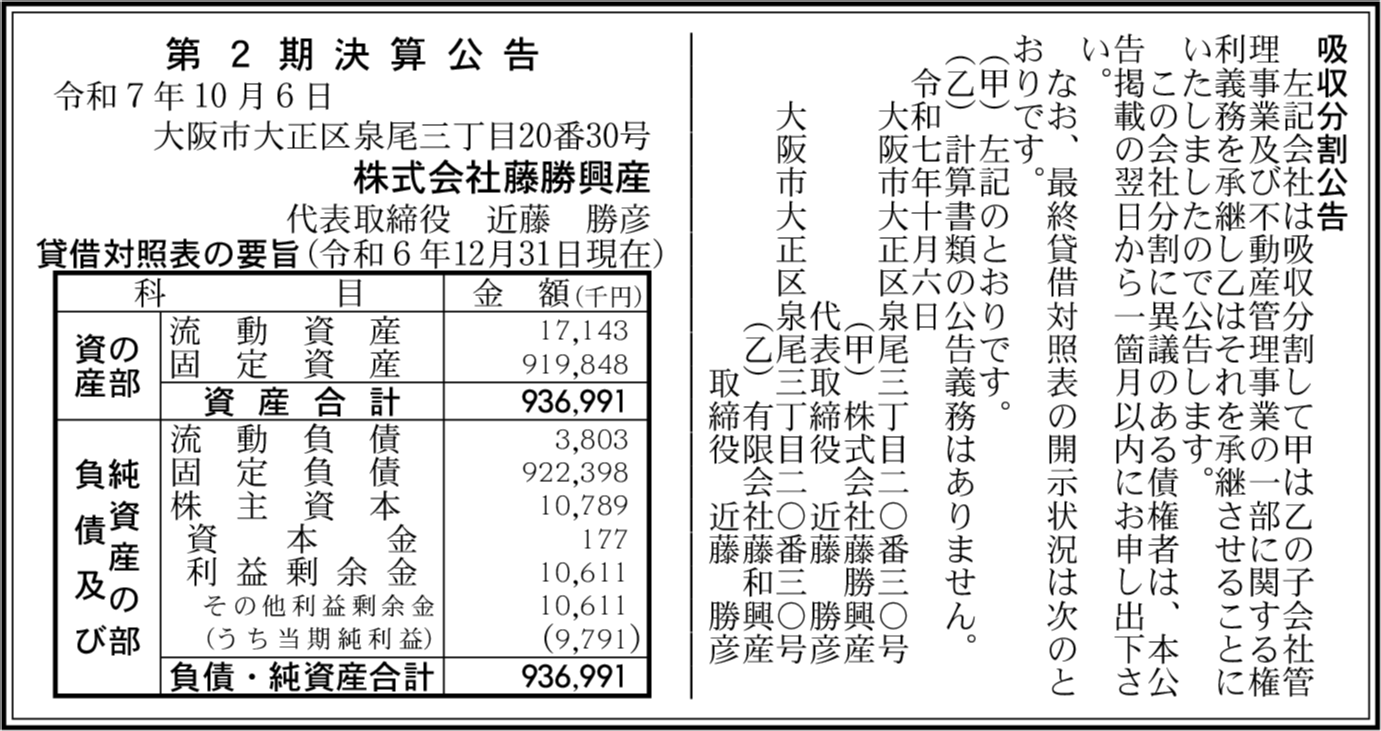 会社名 | 株式会社藤勝興産 |