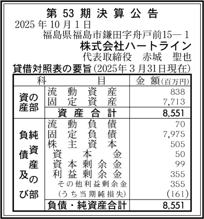株式会社あらかわEサービス 福島県福島市 【2025年3月期】 |