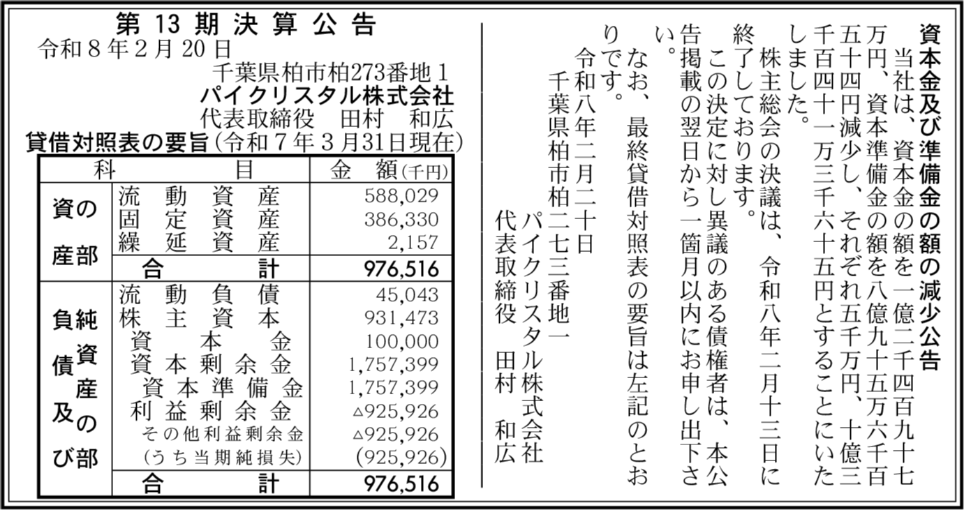 | 会社名 | パイクリスタル株式会社 |
