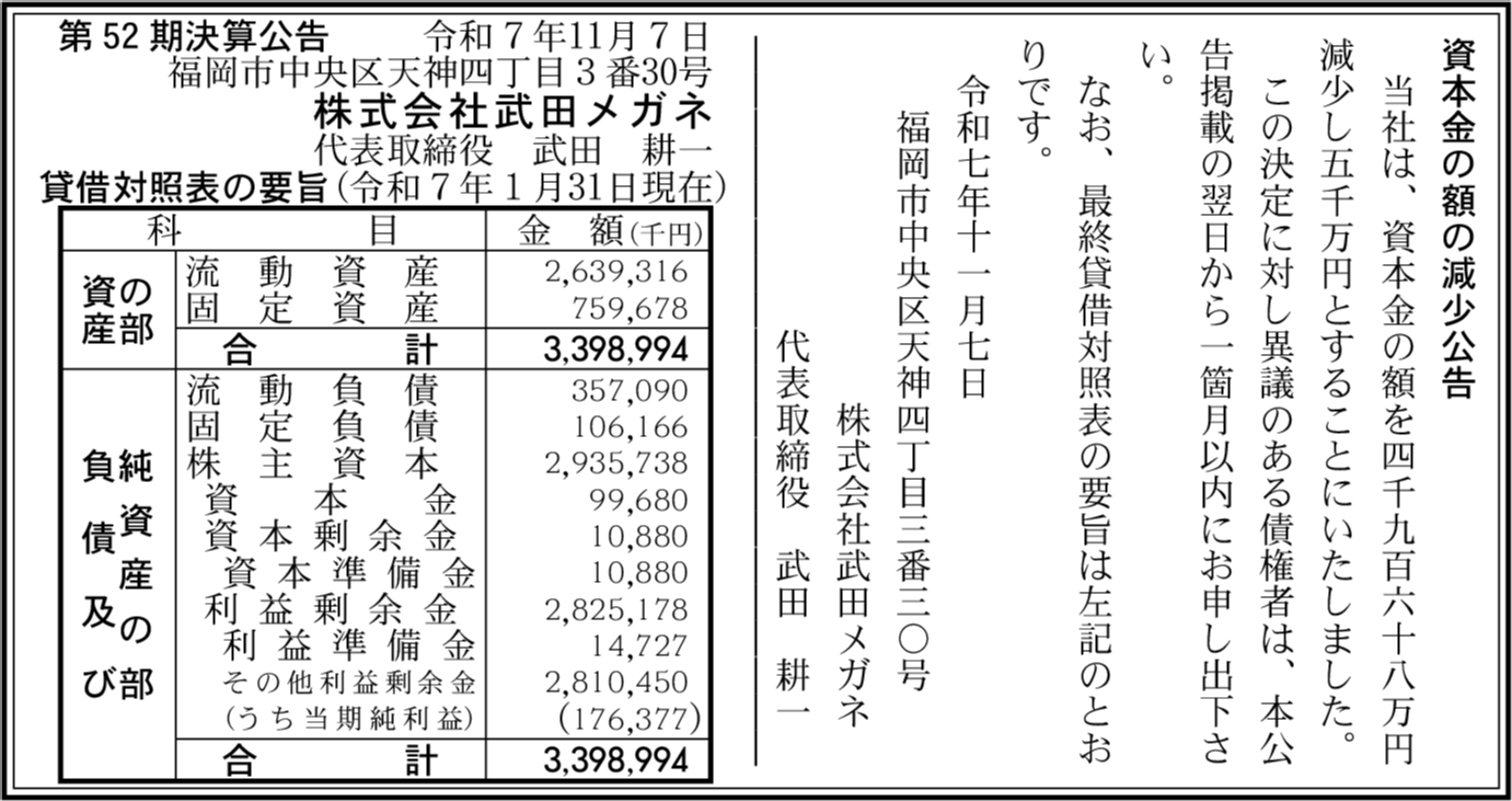 | 会社名 | 株式会社武田メガネ |