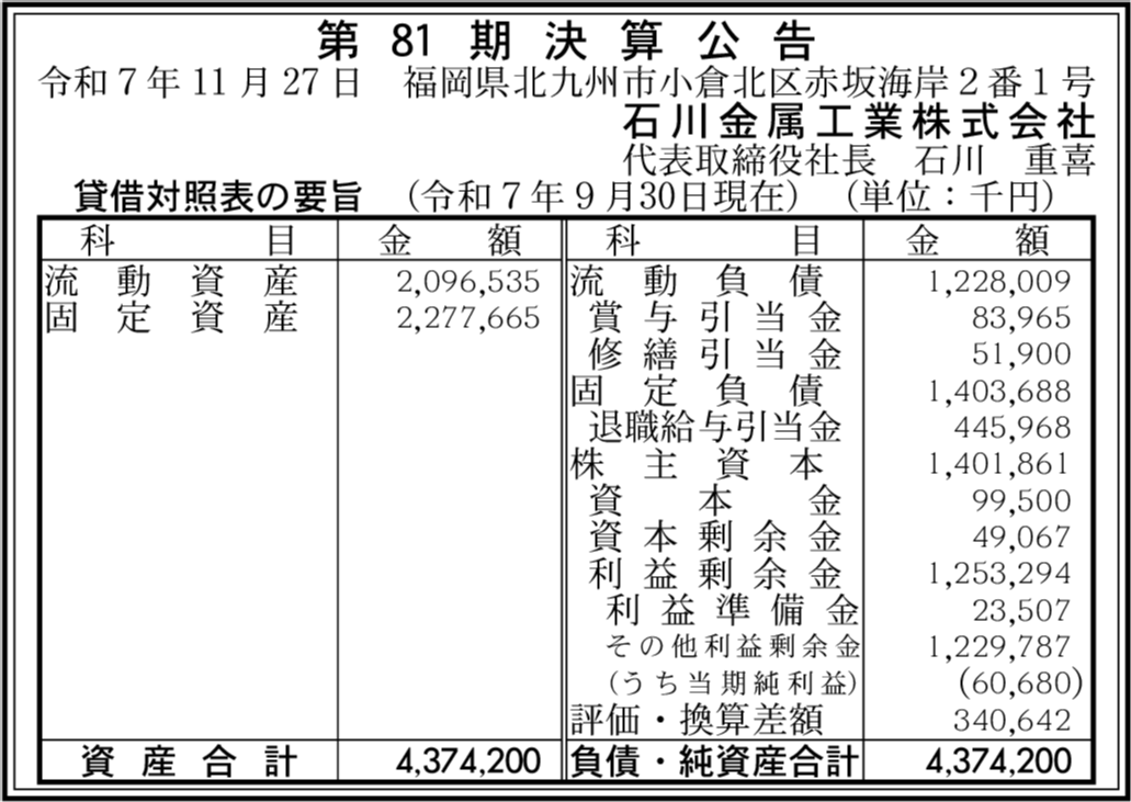 | 利益剰余金 | 12億5,329万4,000円 (+4.08%) |