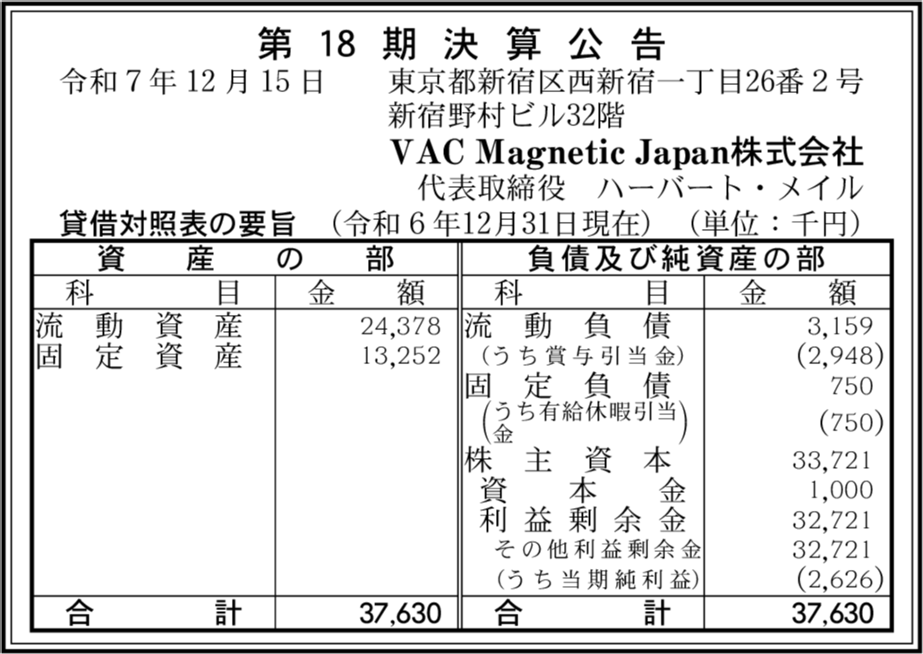 | 会社名 | VAC Magnetic Japan株式会社 |