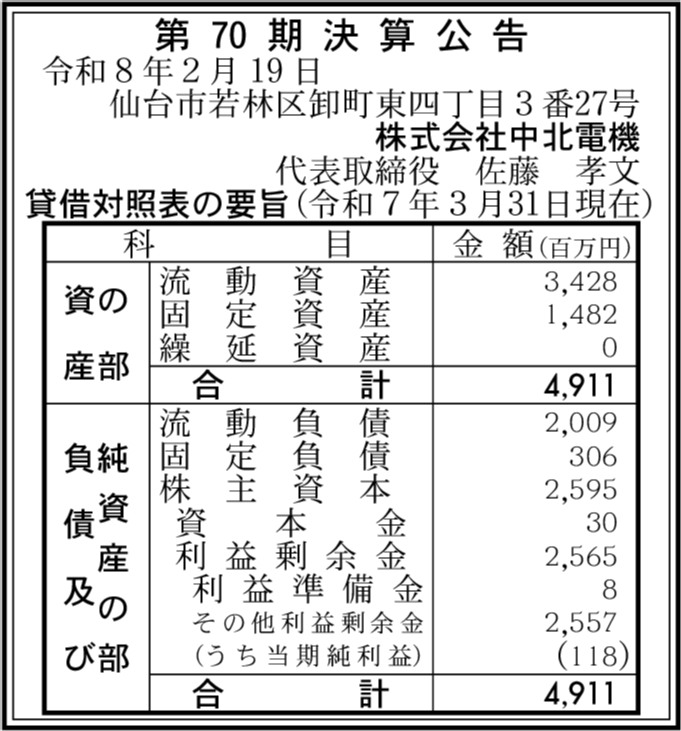 産電工業株式会社 仙台市若林区 【2025年9月期】 |