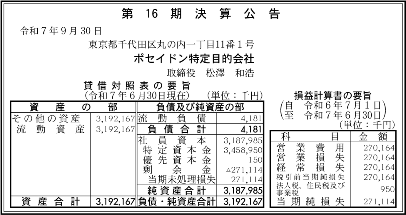 エル・マップ・ワン特定目的会社 東京都港区 【2025年1月期】 |