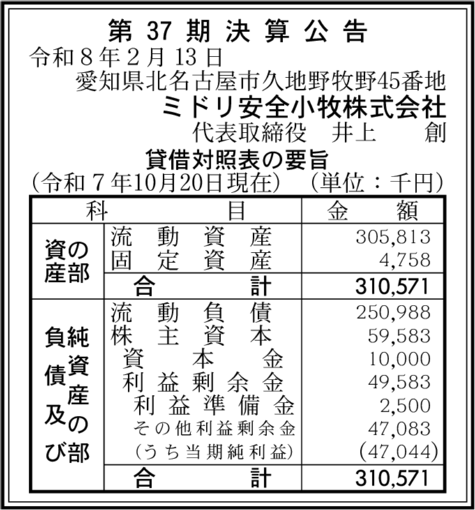 | 決算末日 | 2025年10月20日 |