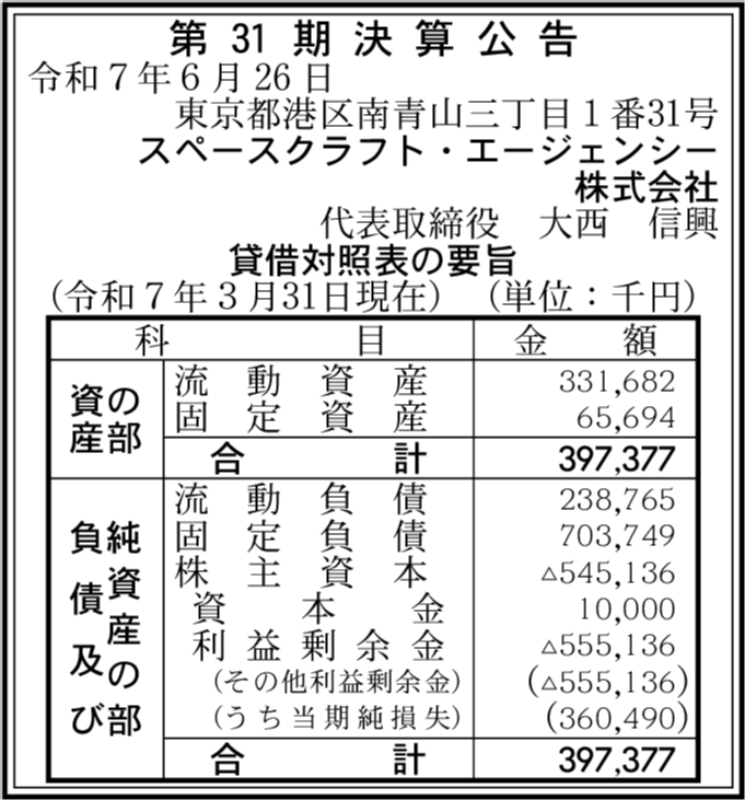 | 会社名 | スペースクラフト・エージェンシー株式会社 |