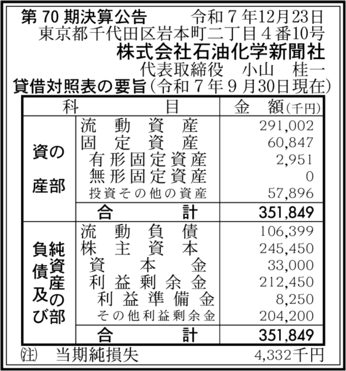| 純利益 | ▲433万2,000円 (赤字縮小) |