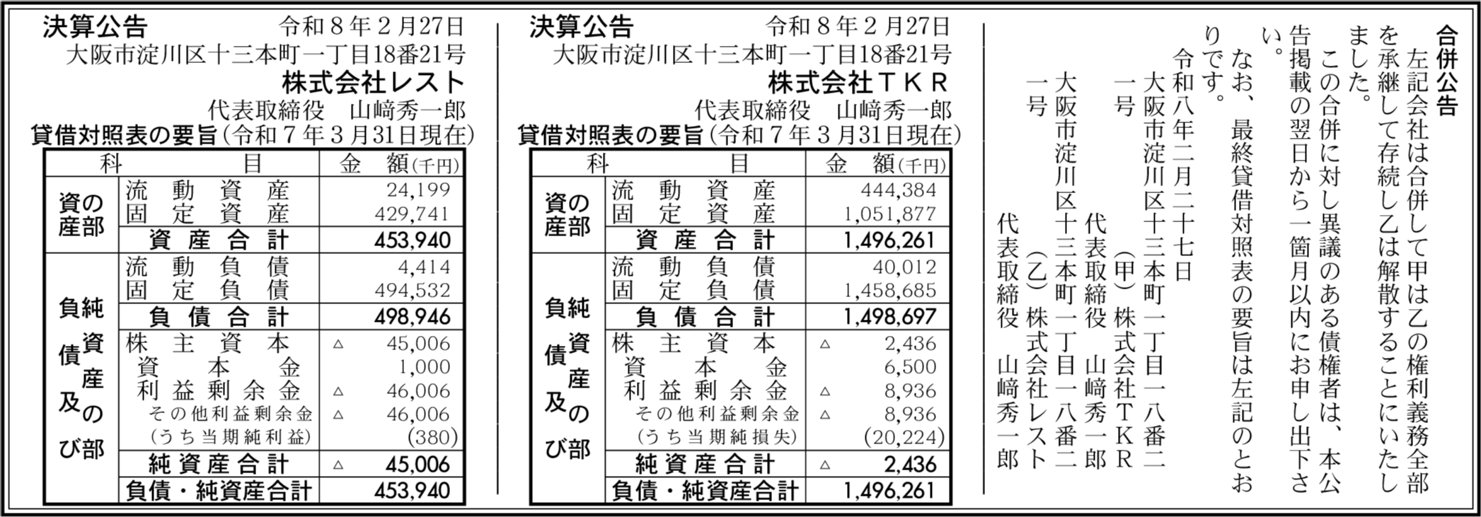 株式会社TKR 大阪市淀川区 【2025年3月期】 |