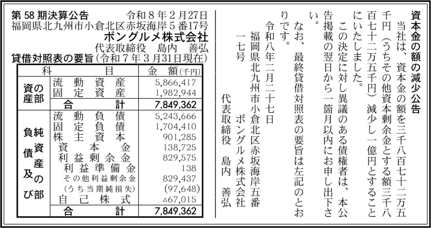 | 会社名 | ボングルメ株式会社 |