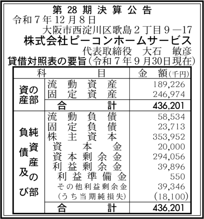 | 利益剰余金 | 3,989万6,000円 (▲31.21%) |