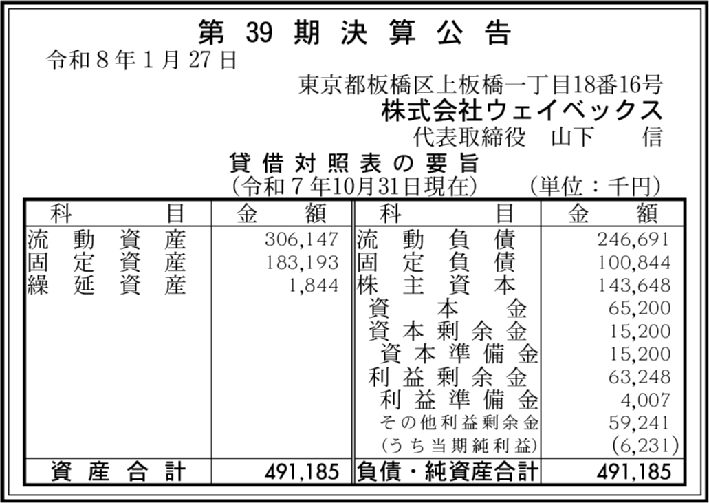 | 会社名 | 株式会社ウェイベックス |