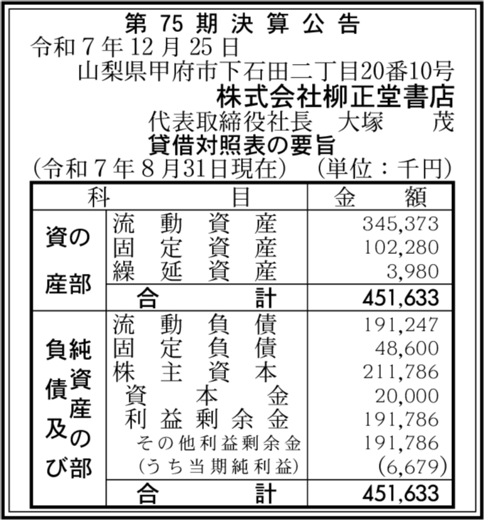 株式会社丸福青果市場 山梨県甲府市 【2025年3月期】 |